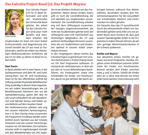 In der aktuellen Ausgabe der Fachzeitschrift Synapse, die von der Ärztegesellschaft Baselland und der Medizinischen Gesellschaft Basel herausgegeben wird, ist ein Artikel über das Calcutta Project und den Aufbau von unserem neuen Programm MAJURA erschienen.