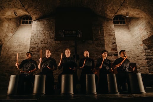 Um 19:30 Uhr startete unser Bühnenprogramm mit einem Trommel-Feuerwerk der Drumming-Entertainment Gruppe STICKSTOFF. Begonnen wurde mit einem klassischen Fasnachtsmarsch, denn alle Mitglieder von STICKSTOFF sind passionierte Fasnachts-Tambouren. Ihnen reichte das klassische Fasnachtstrommeln aber nicht aus, weshalb STICKSTOFF gegründet wurde. Mittlerweile stehen sie auf der ganzen Welt mit ihrem innovativen und extrem präzisen Trommeln auf der Bühne. Nach der atemberaubenden Show mit Lichteffekten, wurde auch das Publikum auf seine Rhythmusfähigkeiten geprüft und aktiv miteinbezogen.